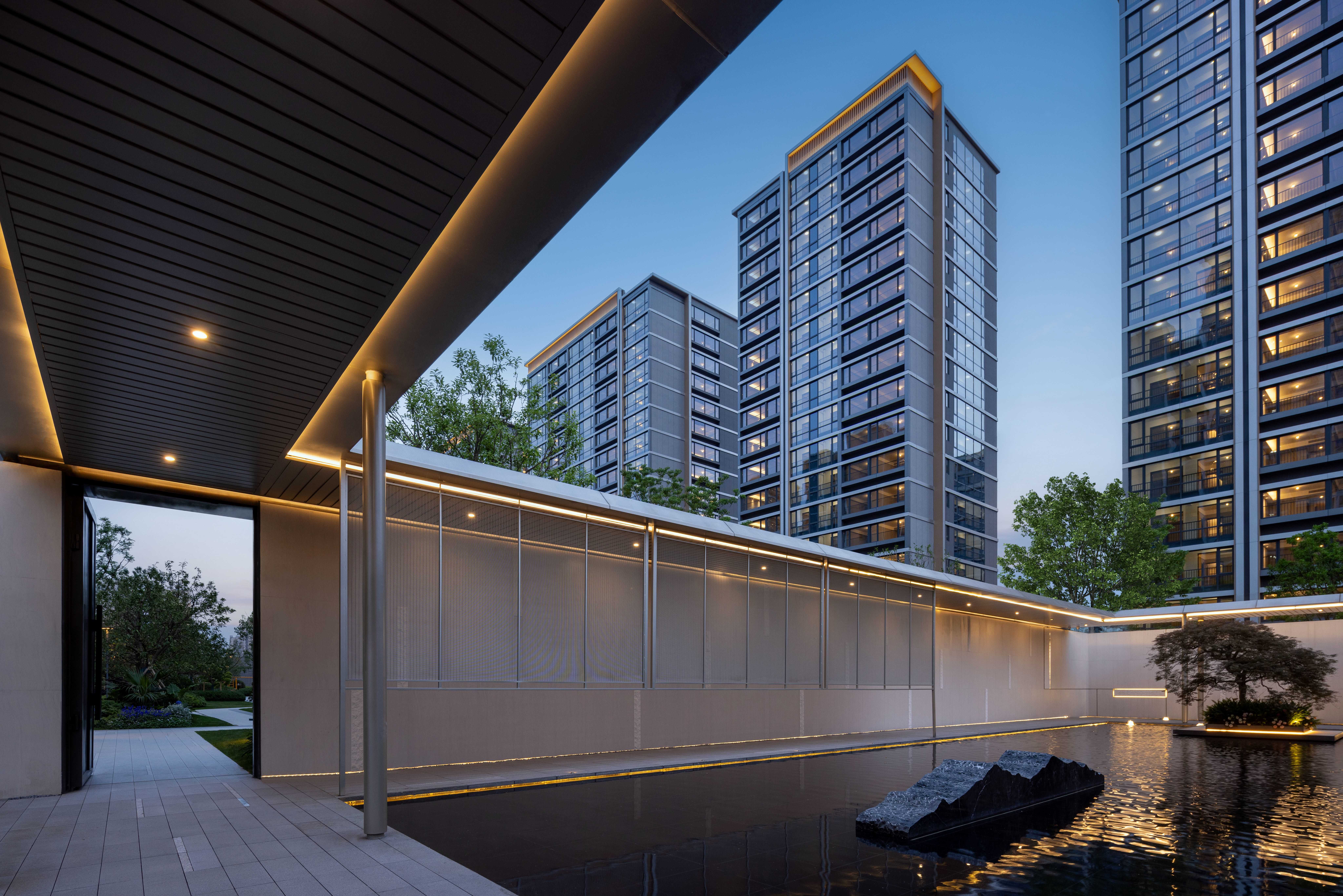 杭州地处长三角核心区域,坐拥钱塘江与京杭大运河南端。西湖文化、良渚遗址与丝绸茶韵在此交融,赋予「兴耀·观麓里」 独特的人文底蕴,成就理想人居之选。 项目采用中轴对称与周边式布局,最大化利用中心景观及周边自然优势。设计以外部景观资源为面,内部园林为核心,社区动线为纽带,通过建筑围合与架空层设计,实现私密性与开放性的平衡。多层次景观轴线与组团对景,营造步移景异的视觉体验。 建筑外立面采用铝板与真石漆相结合的设计,基座选用石材与铝板干挂,既展现现代美感,又体现精工品质。沿街建筑延续统一风格,细节处理考究,实现功能与美感的完美平衡。