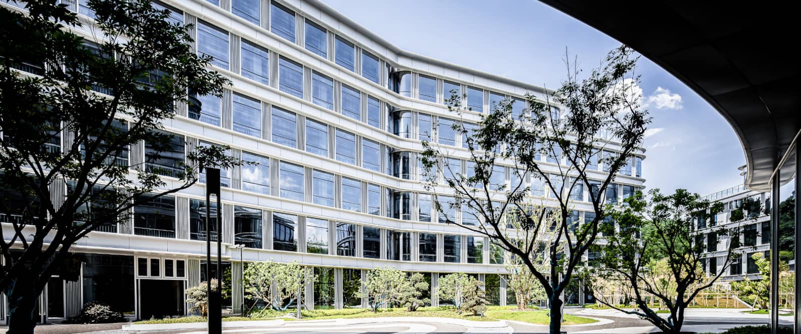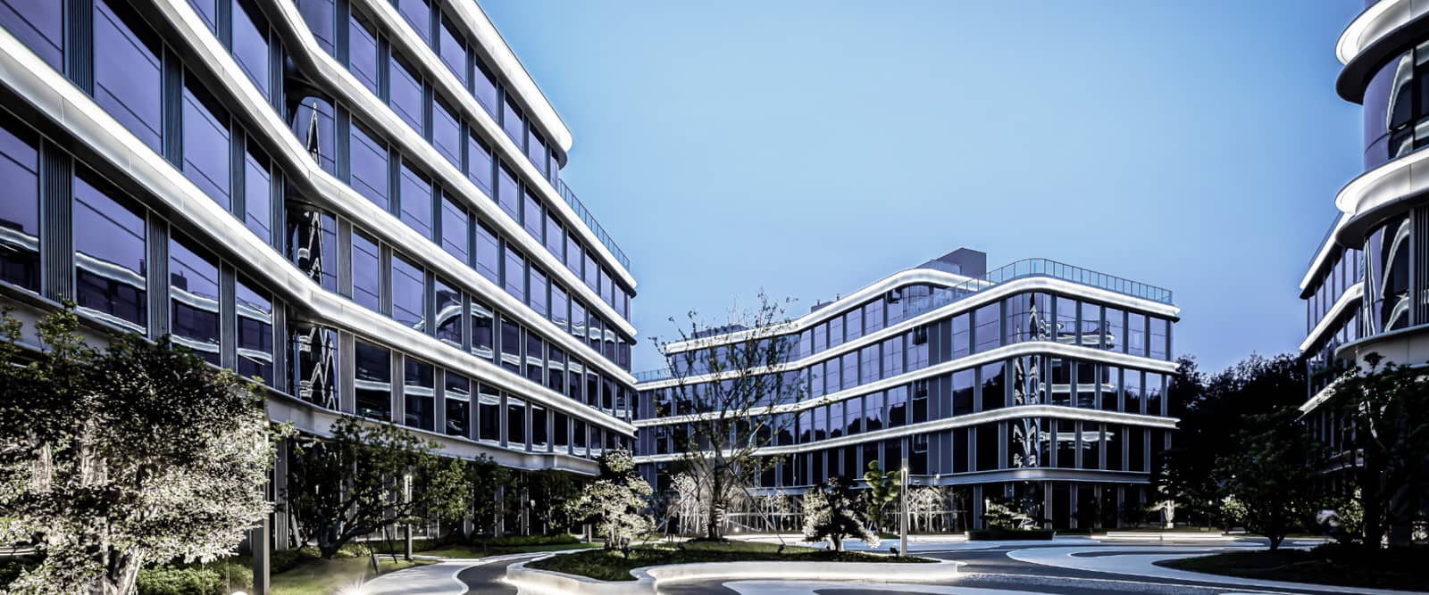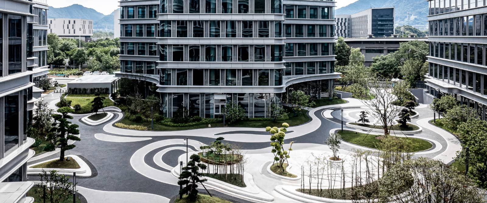 项目的景观设计通过4栋建筑的规划,形成地块中部较大的中心绿地景观,也是本区块的室外的景观中心。其余均为一些零散的绿地。通过对中心绿地的精细化设计,形成本项目的视觉中心。绿化系统采取乔木与灌木相结合的手法。在平面布置上,采取点、线、面相互穿插的构图方式,采用各具特色的植物树种,满足办公对环境的行为、心理需求。道路绿化多选用常绿乔木,部分选择落叶乔木为道路行道遮阳树种,创造“夏有荫,冬有阳”的生态空间。