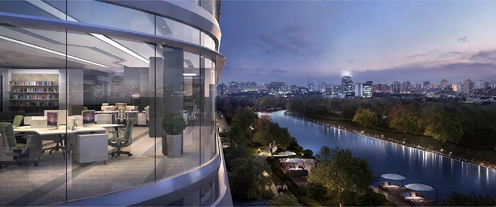 德信 • 云川位于西湖区,紧邻西溪国家湿地公园,坐拥完善的交通体系,机场轨道快线-西溪湿地站直通园区(2022年计划通车),同时毗邻已通车的地铁5号线蒋村站。德信 • 云川以1.8低密容积率,打造4栋多层围合式写字楼,约300-1200㎡灵动空间,自由分割。一层5米挑高,3.9米奢阔层高,于顶层可将西溪风光尽入眼底,给予办公者无限创作灵感。同时,项目西北面有河流环绕,透过玻璃幕墙即可看见风景,“湾”形水系起到聚财作用,风水极佳。在承接城市繁华的同时,背向熙熙攘攘的街道,一步生态的办公享受。
