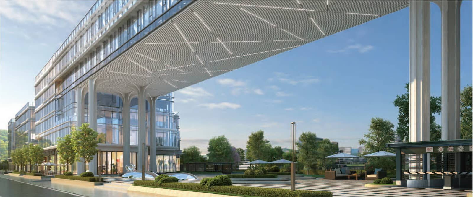 在建筑的整体规划上,项目设置了独立办公空间,独立入户大堂。匠心打造全幕落地玻璃幕墙,超大面宽,最大可实现270度采光;具有低密度、低容积率、低楼层、高绿化率、高得房率的核心优势。同时,本身自带高品质酒店和餐饮配套,更大程度的提高了项目的商务属性。在景观规划上,德信 • 云川的花园式生态办公,滨水空间,直面西溪湿地,实现办公与自然融合,大大提高员工的工作热情。