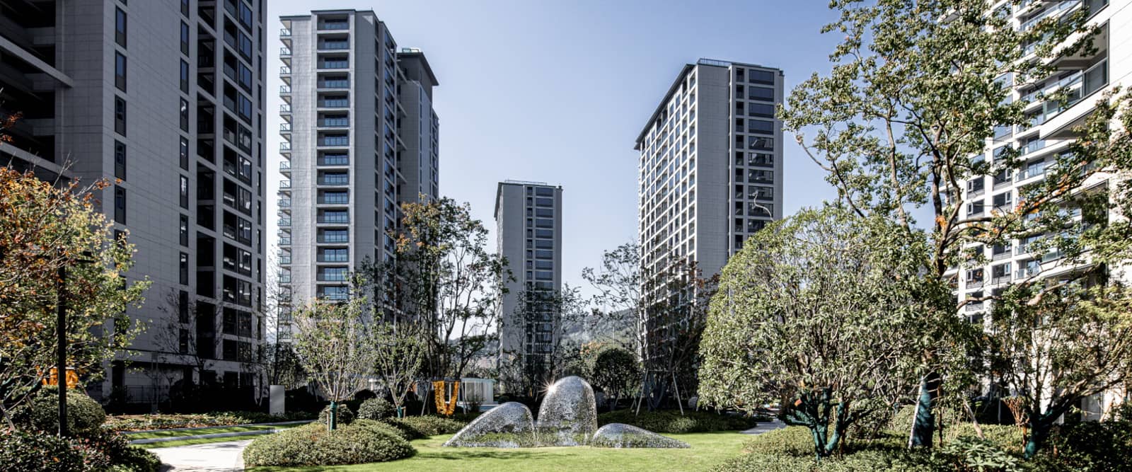 在规划方面,考虑到小区住宅日照、朝向、通风、景观的“均好性”,并以居住环境价值来规划设计建筑群体的组合空间及室内空间,尽可能消除环境低价区位,化不利为合理和有利。同时设计中竭力营造了多层次的景观环境布置, 以住宅设计为核心,结合各式花园及绿化通道设计, 将整个居住区融于环境之中, 满足人类对接触大自然的追求, 创造集文化艺术、休闲娱乐、阳光健康的室外生活空间,缔造高品质的生活环境。