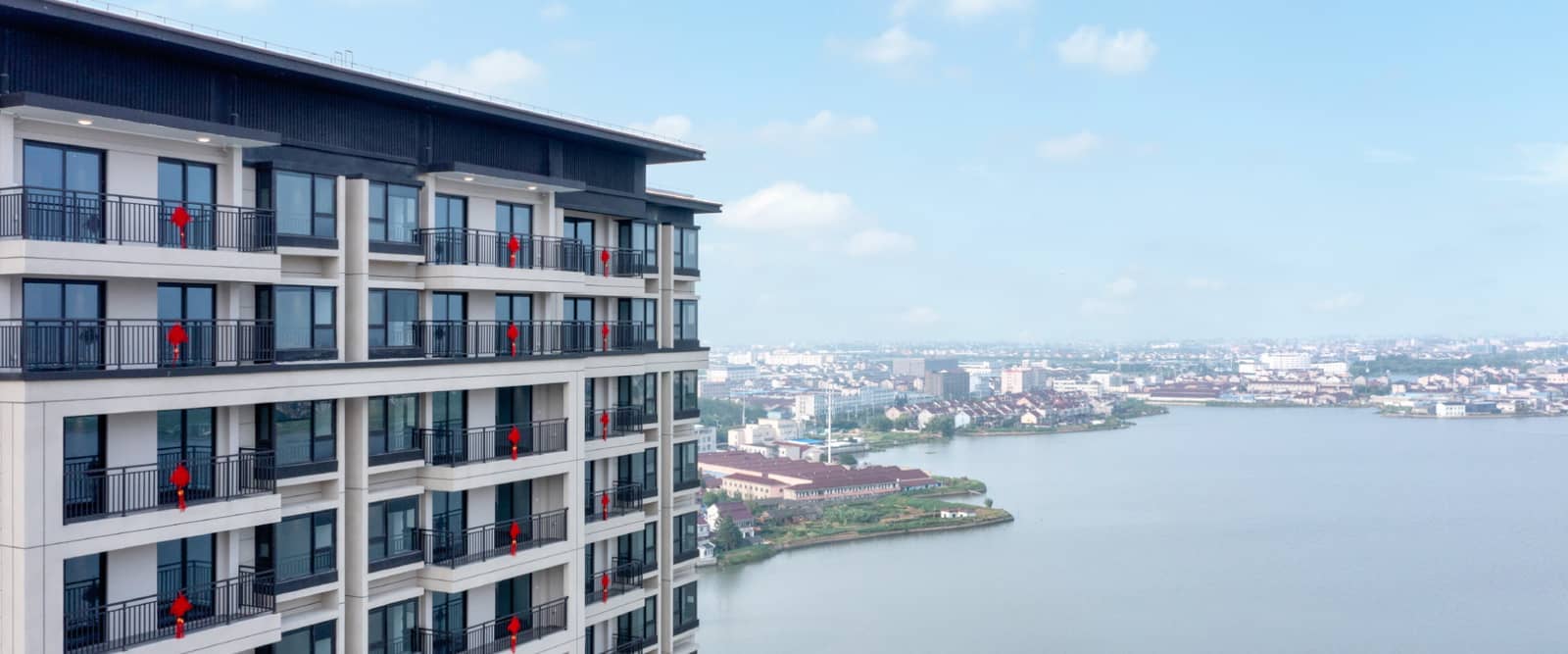 苏州德信 • 望澜庭项目位于历史文化名镇盛泽镇,地处上海一小时都市经济圈,东濒西白漾,南接浙江嘉兴,北依苏州主城,坐拥优质自然资源和交通资源。项目顺应基地自然肌理与西白漾共生,采用德信经典大院系产品,循千载丝绸文化的古韵新篇,传统与现代的融合,营造新时代盛泽的品质人居。