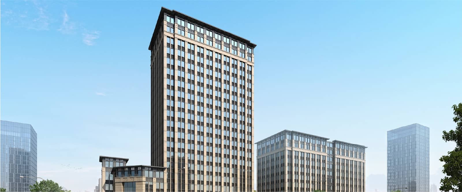 地块位于武汉市东湖高新开发区高新四路,东园西路以东;流芳园西路以南;高新四路以北,临近光谷金融港。武汉光谷汇金中心的设计理念以“城市记忆”主题为统领,设计遵循“凸现历史,上演品质”的原则。一方面是象征着城市记忆的老房子的真实再现,另一方面,又是活跃的新肌体,顺应城市的发展模式,并反射出城市的各异的图景。