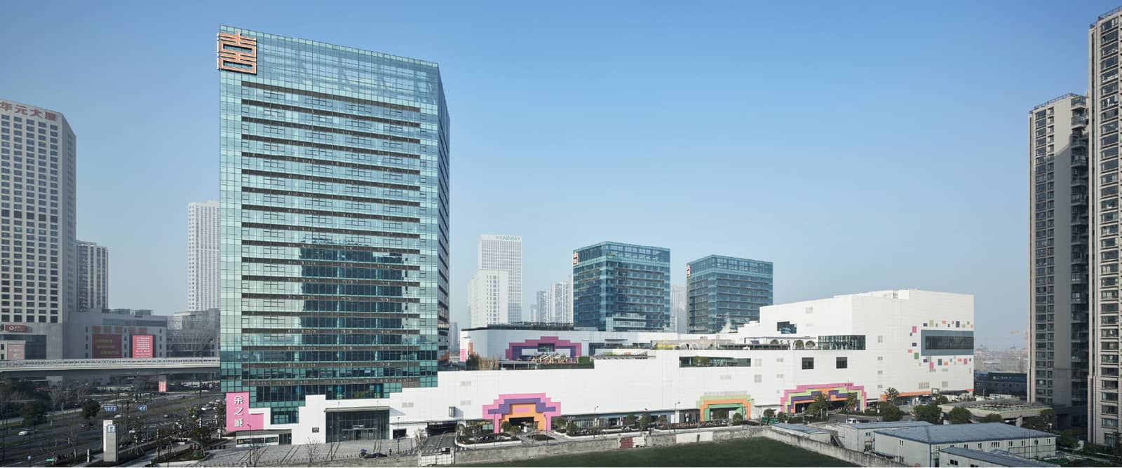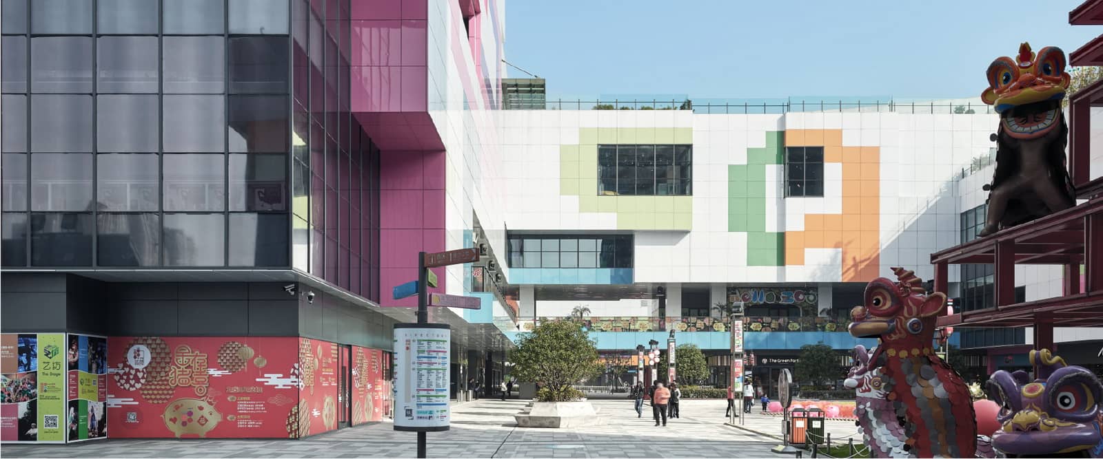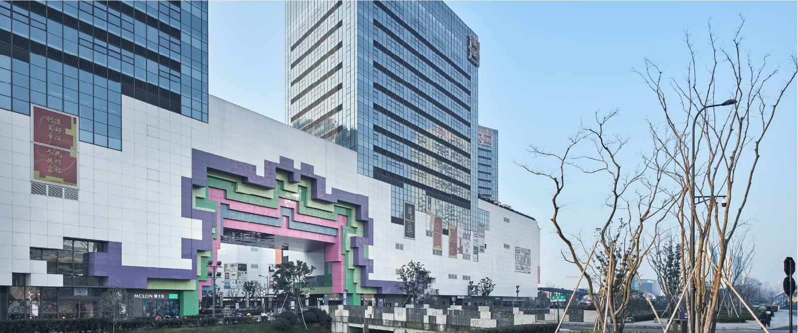 杭州余之城生活广场从总平面及业态布置到外立面的设计,均以围绕着“欢庆”这个主题着手,旨在达到一个形式统一、外在纯洁、内在充满活力的“欢庆家园”。