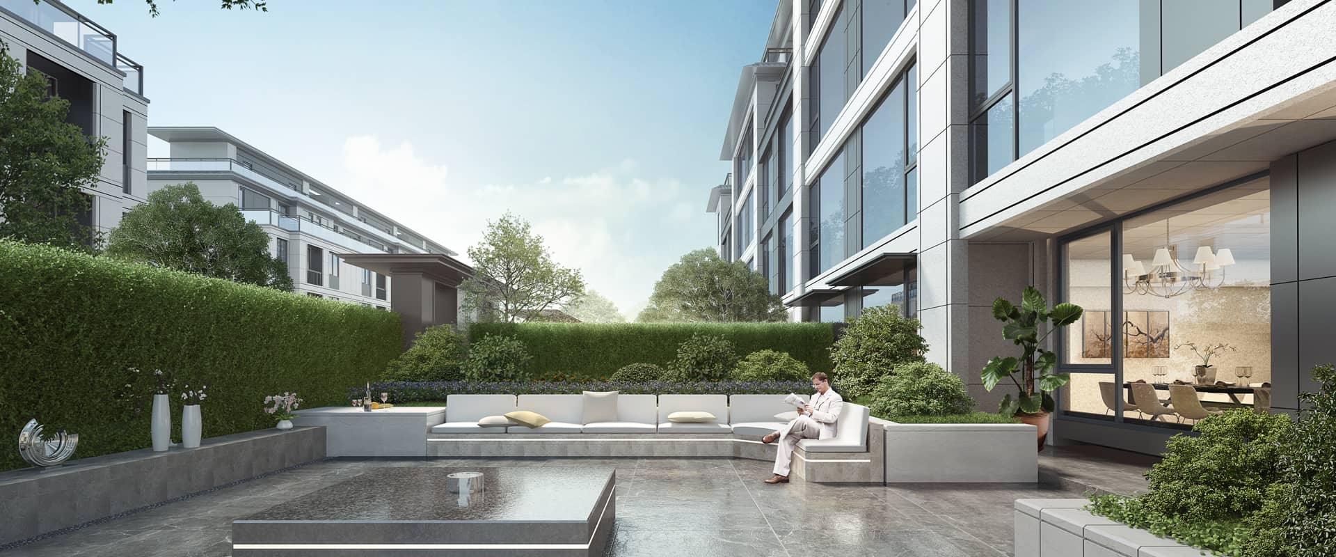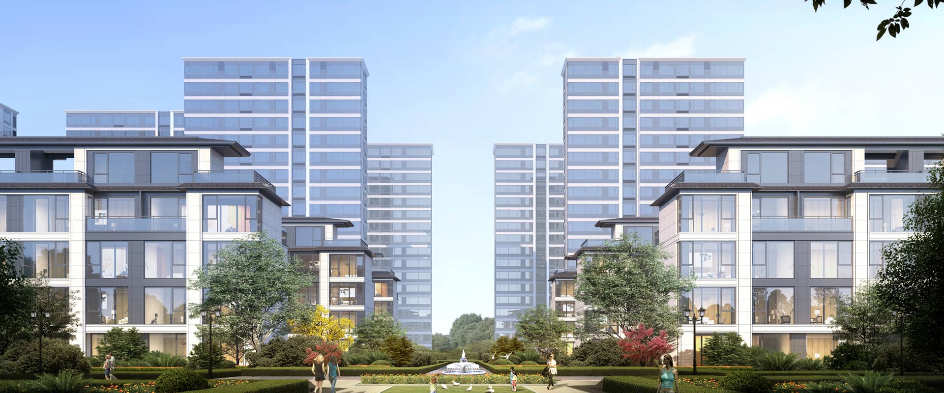 德清 • 时代云起开发项目,以地块中心景观、周边有利景观利用最大化为主旨。在保证了地块内中心景观最大化的前提下,努力做到各住宅单体的景观均好性,扬长避短。设计中以场地内的中心景观为点,以庭院景观为线,通过建筑的围合分布,形成一个既有组团私密性、又有开阔中央景观带的住区,保证了户户均好的景观共享与采光日照。