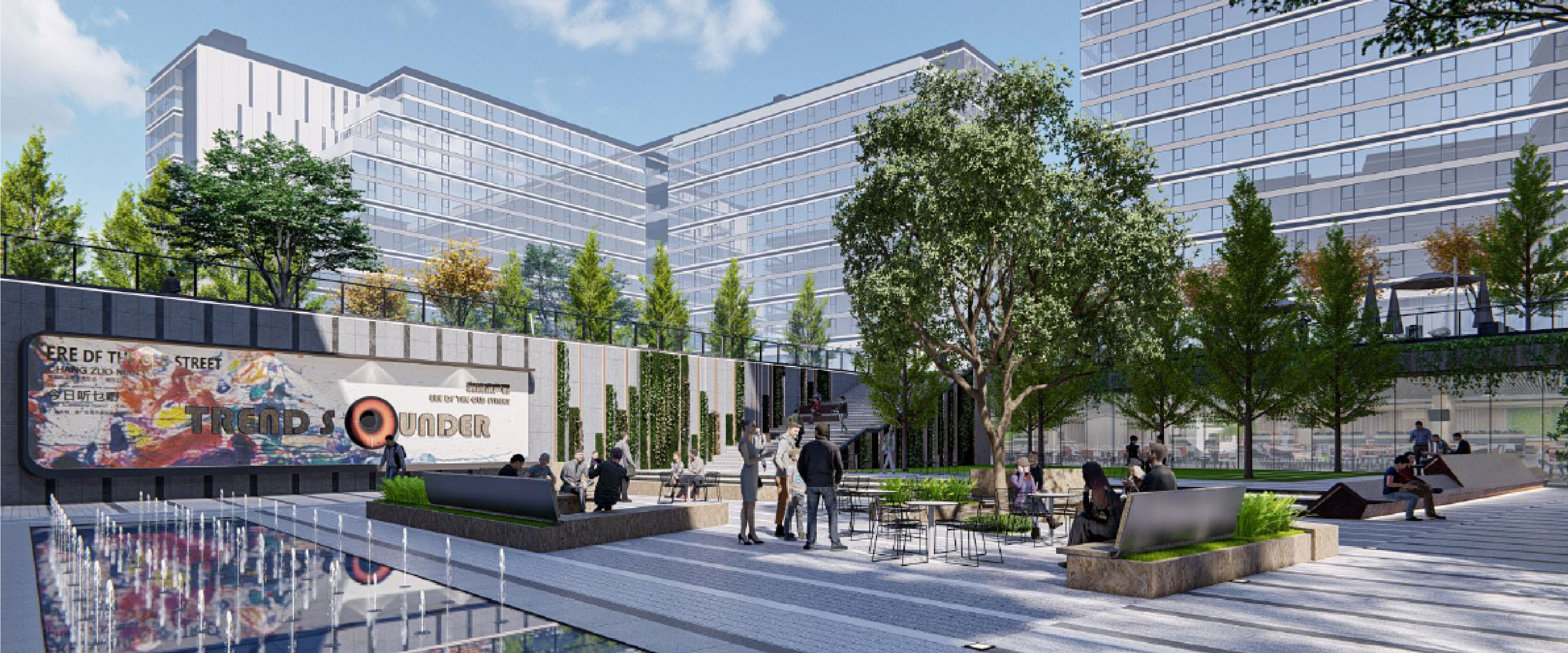 在景观设计中,我们综合考虑了广场的功能需求以及未来可持续性的多变发展趋势。通过精心运用点、线、面的景观组合设计,我们将公共景观和景观节点融入其中,使景观更具立体感。