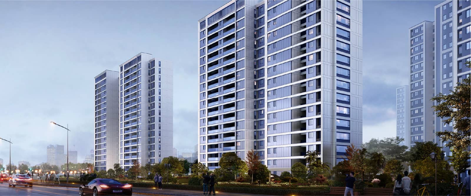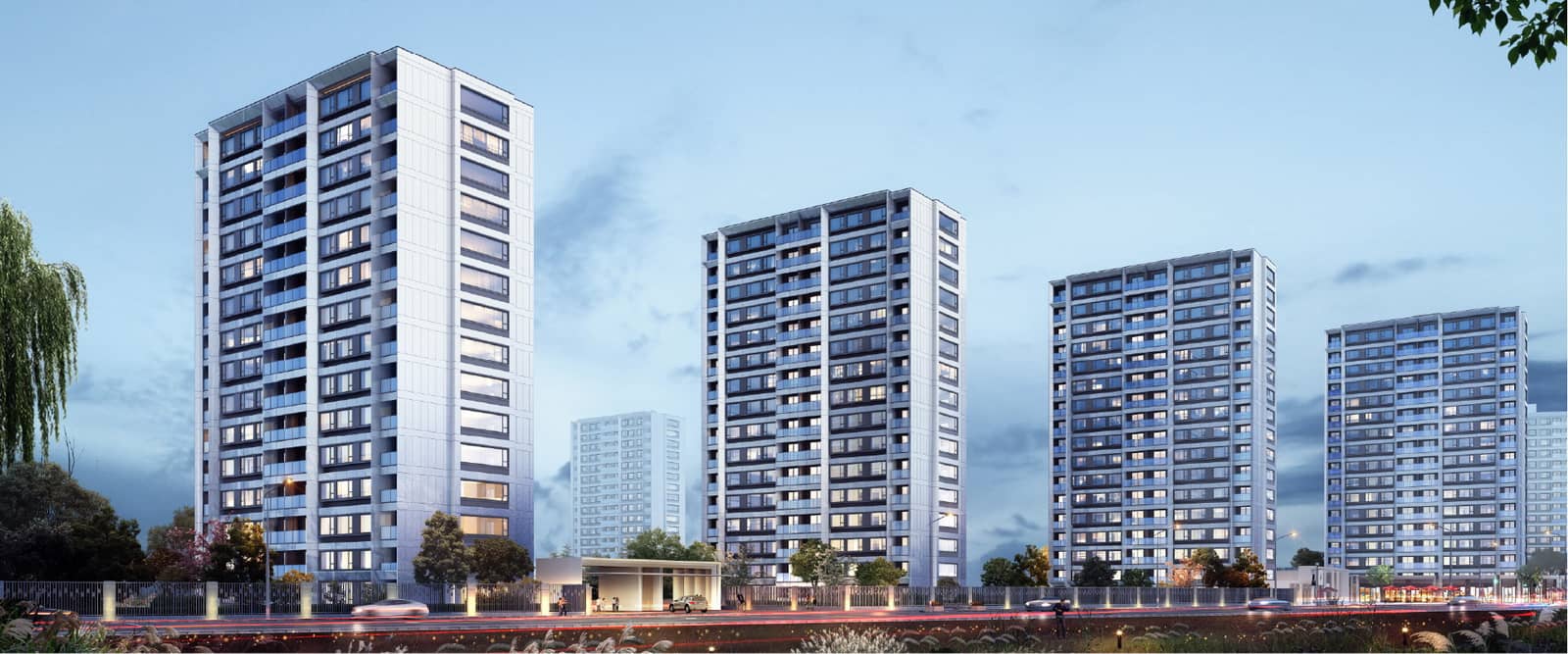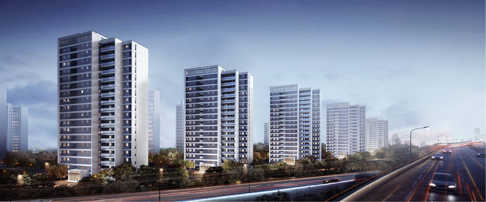 在景观设计方面, 中梁 • 沐宸院着力解决了建筑、环境、生活的关系,整合建筑、规划和交通环境等方面优势。主题鲜明,风格显著,富有文化内涵。真正体现“崇尚自然,关爱生活,以人为本”的人居环境设计理念。小区主入口景观空间是小区最重要的节点景观,中央庭院结合入口广场布置景观,并依托主轴线环状设计绿化带,串连各个绿化小组团使得园区内开放空间、半开放空间、私密空间的领域感、尺度感和观赏性均得到满足,创造自然、舒适、亲近、宜人的景观空间。