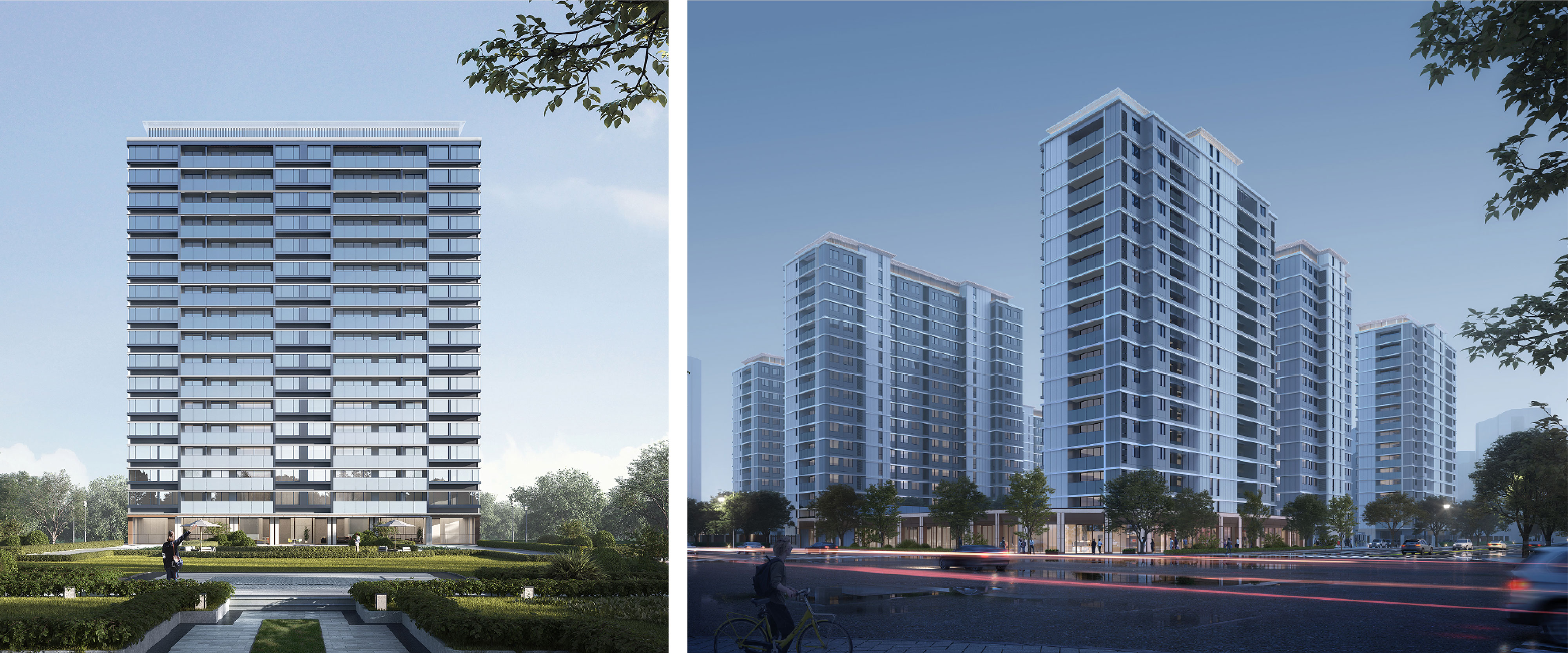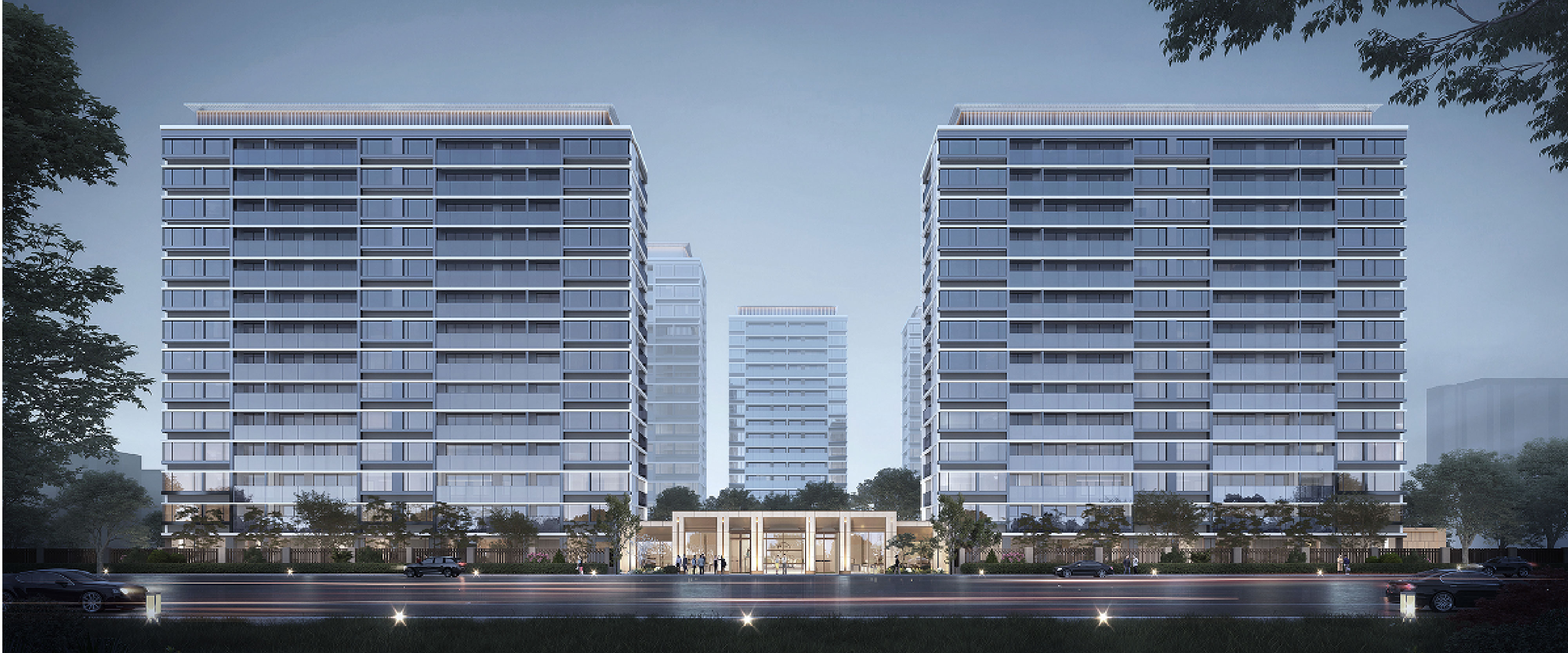 小区北侧长滨街设有机动车出入口,配备两个双向汽车坡道,而南侧沈康路则设有人行入口,为居民提供便捷的通行选择。从人行入口进入,迎面而来的是中心景观轴和中心绿地,营造出一种温馨而舒适的归家感