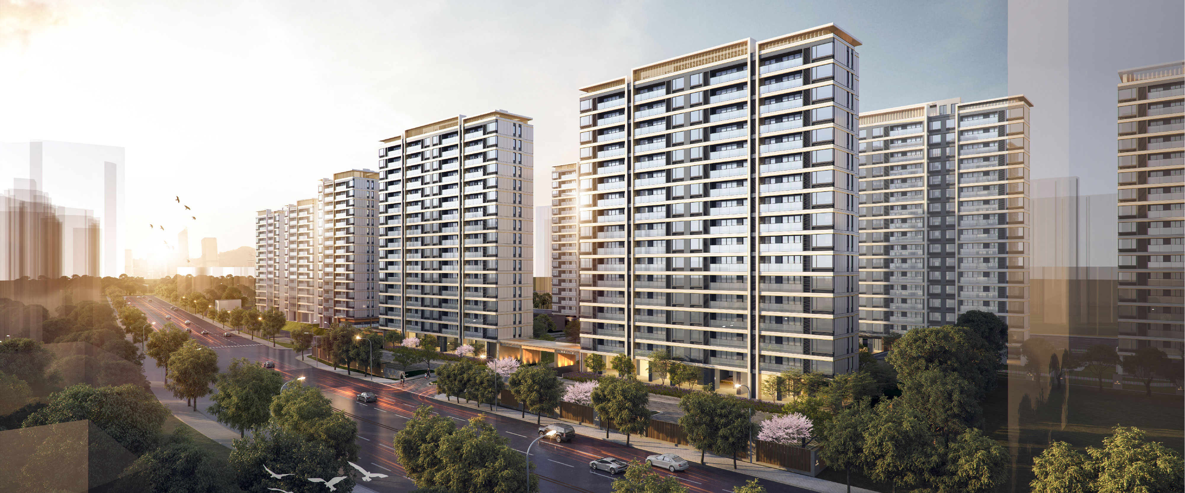 项目分为东西两个地块,利用周边空间资源,设计团队巧妙运用了阵列式布局策略,精心规划了2幢20层及7幢26层的高层住宅楼,这些楼宇围绕中央绿地精心排布,共同构建了一个以绿地为核心、两翼延伸的“一心两带”居住景观。