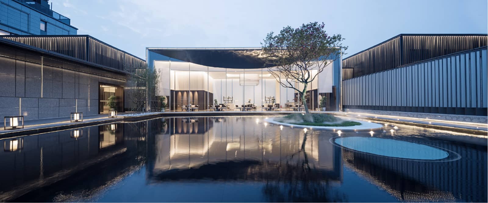 德信 • 九溪云庄是从西湖、梅灵、九溪、钱塘江四大景区汲取了设计灵感,打造为当代东方美学院邸。建筑的每一个立面、每一个线脚,景观的每一处细节,都是体现了东方文化的传承和再造,以及现代居住理念的理解和升级。在景观设计上,项目被丰富的景观和充裕的阳光包围,园区景观采用“中轴对称”、南低北高的合理布局,融入精致灵动的现代园林。同时,整体打造约180米长的公共景观中轴,规划约4000㎡的集中式东方园林,构筑南北面通透大玻璃景观的云庄生活馆,只为给业主实现人与人、人与自然的亲密接触空间。低密度的云墅区块能让您享受更多小区景观的同时,能拥有更多属于自己的私密空间。