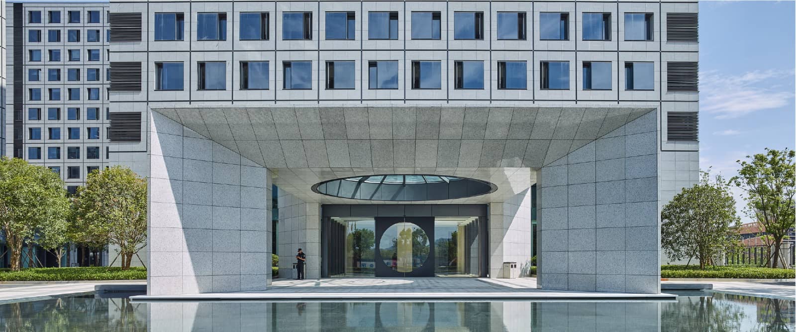 在空间设计上,西溪谷以打造“商业园区生态”为出发点,力求简洁,大气,高效,实用。整个园区规划有:商业配套空间,健身娱乐空间,步行街草坪休闲空间,满足了园区员工一站式生活休闲需求。同时, 项目的建筑语言以西方现代主义都市风格为基础,融合东方古典宋韵美学,中西合璧,浑然天成。