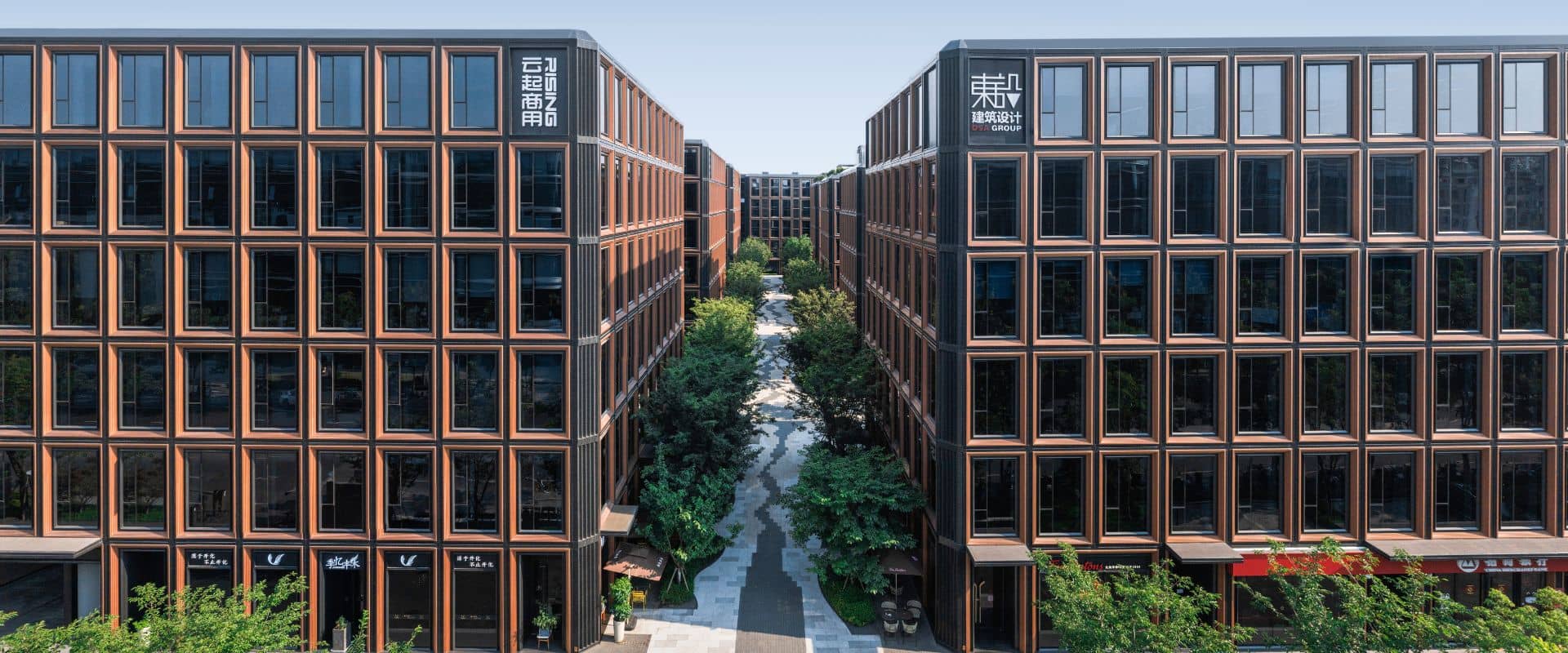 云起中心位于浙江省杭州市西侧,毗邻西溪湿地公园。旨在以“城市记忆”为主题,抽象“西溪湿地环境肌理”的原则,打造一个由高端企业独栋组成的现代化办公园区。