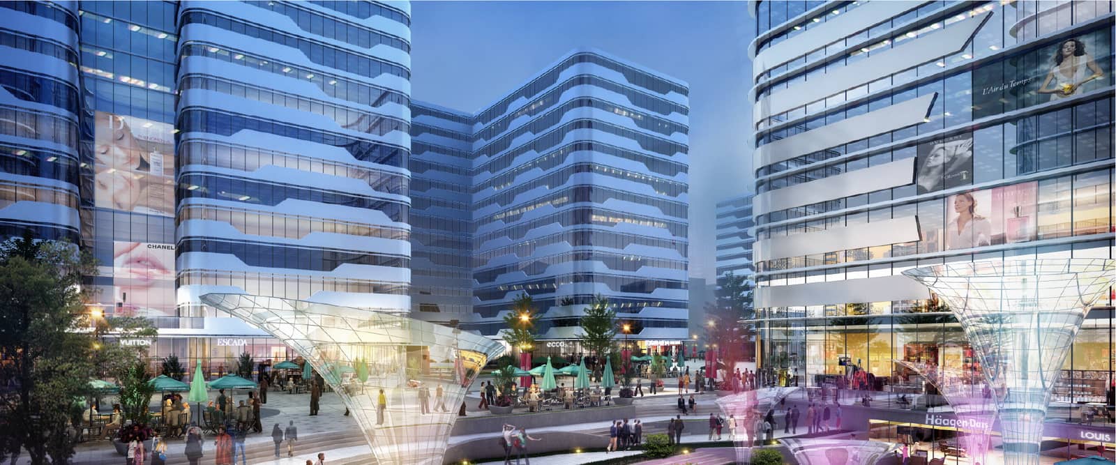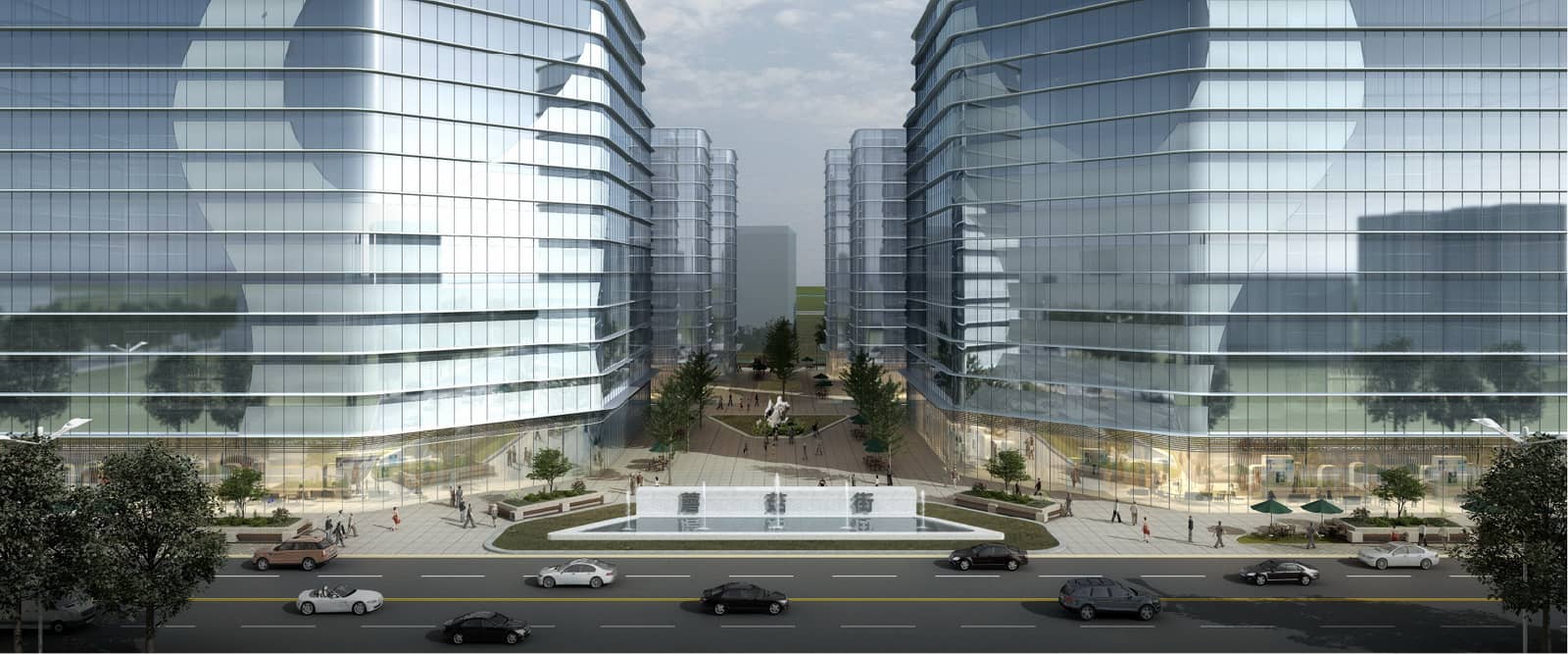 在园区的景观规划上,DSA团队以独栋的研发建筑为主,使沿河城市景观绿化带与园区内部景观互相渗透。规划通过公共景观、景观节点等将景观立体化,采用与建筑同步的模数划分场地铺装,巧妙地插入植物绿地设计,运用几何图案创造出绿茵场地和可休憩的后现代特色空间。把本项目打造成为“生态绿洲”的生长型特色商务研发区。