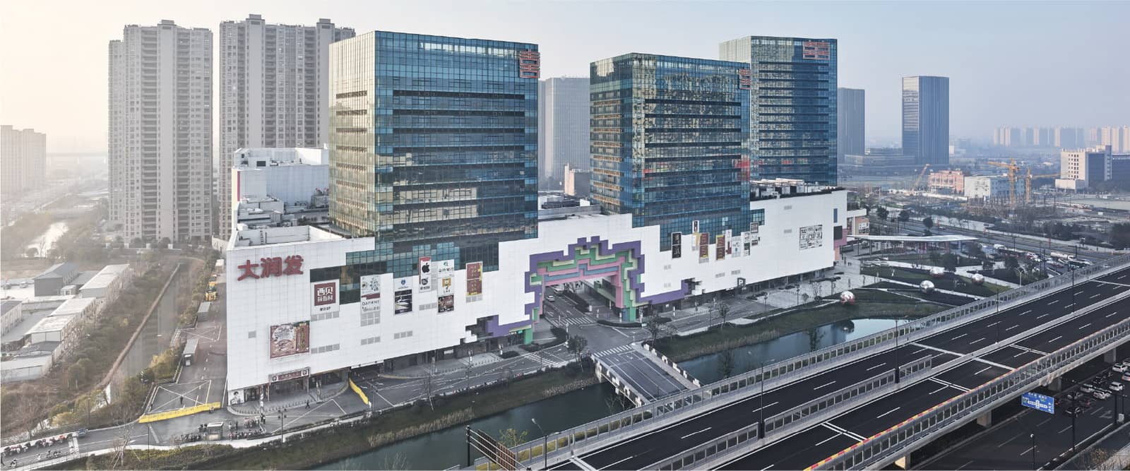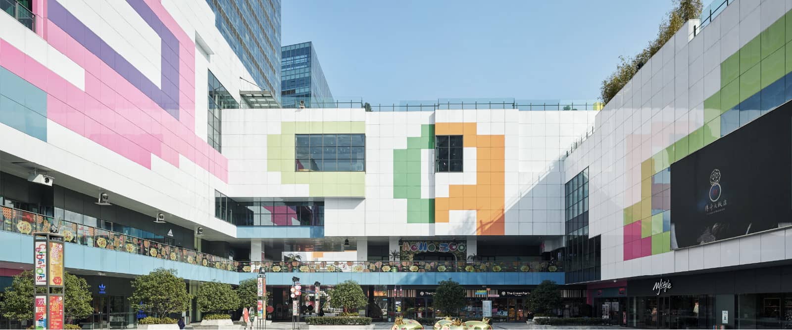 杭州余之城生活广场从总平面及业态布置到外立面的设计,均以围绕着“欢庆”这个主题着手,旨在达到一个形式统一、外在纯洁、内在充满活力的“欢庆家园”。