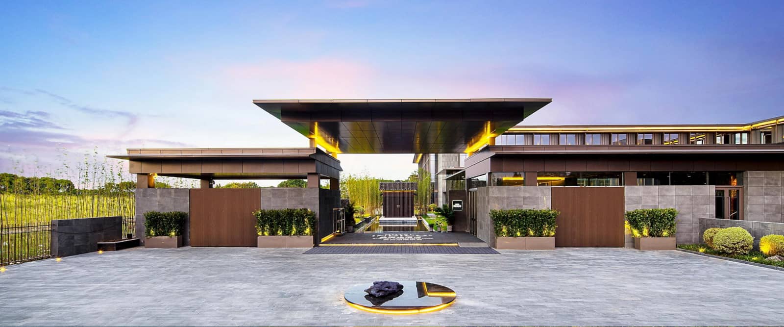 苏州英迪格酒店坐落于苏州阳澄湖半岛旅游度假区,致力于“精品高端及绿色生态”的发展定位,呈现“天边水泽 · 别有乾坤”的胜景,酒店地理位置得天独厚,三面环水,环境清幽。基地本身形态较为方整,所以我们考虑从模数化的建筑手法来对整体空间布局及建筑形态进行统一控制。