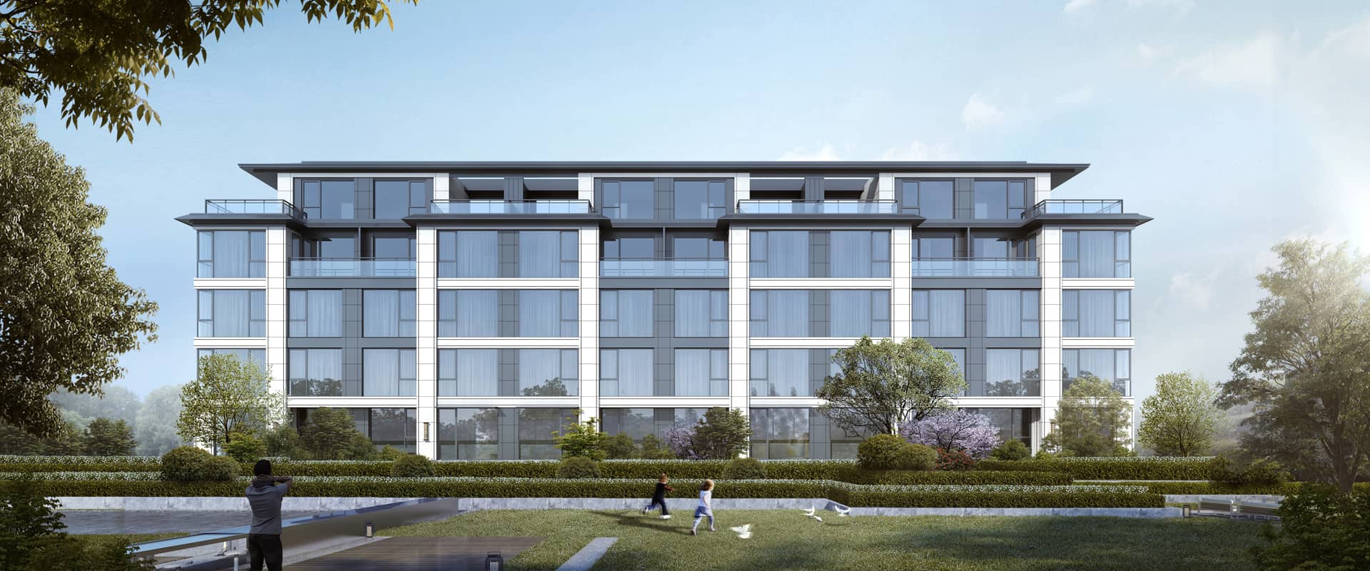 德清 • 时代云起开发项目,以地块中心景观、周边有利景观利用最大化为主旨。在保证了地块内中心景观最大化的前提下,努力做到各住宅单体的景观均好性,扬长避短。设计中以场地内的中心景观为点,以庭院景观为线,通过建筑的围合分布,形成一个既有组团私密性、又有开阔中央景观带的住区,保证了户户均好的景观共享与采光日照。
